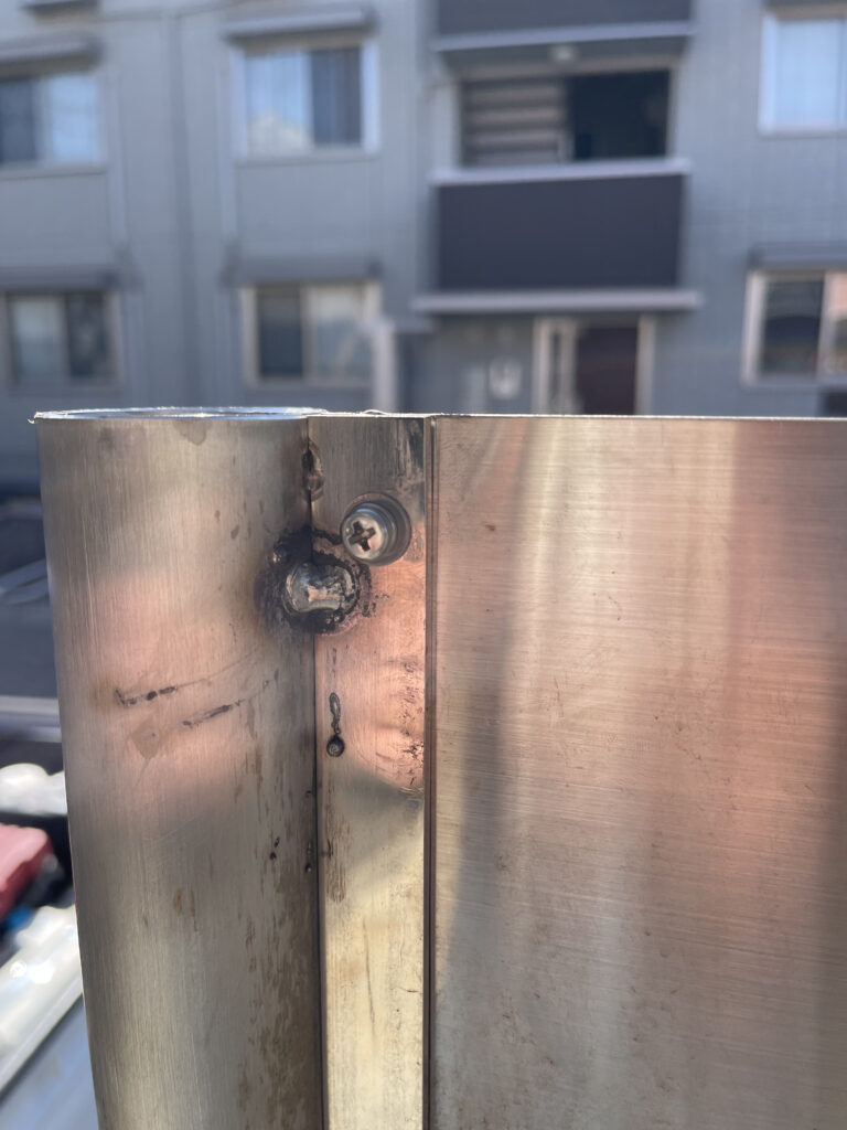 持ち帰れないため溶接補強・ネジ止めにて固定